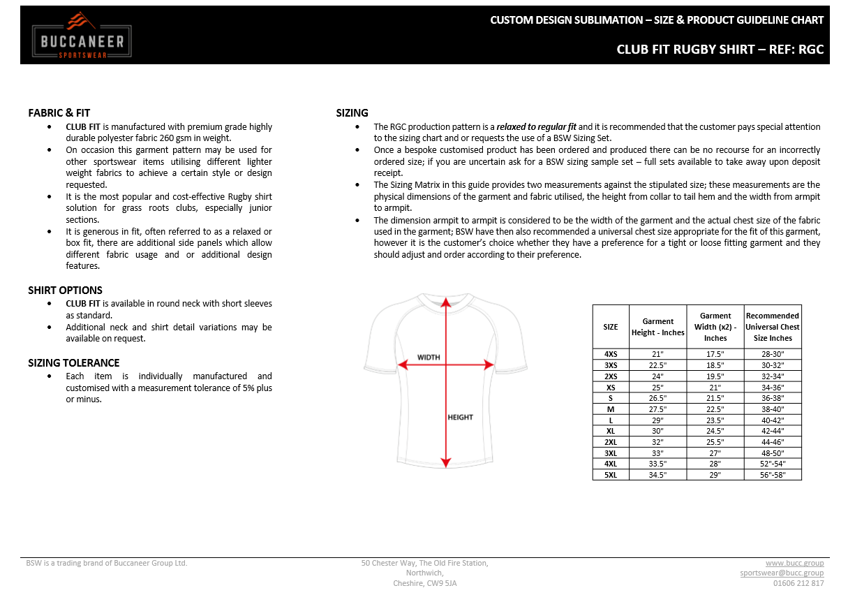 BSW CLUB SHOP CUSTOM CLUB FIT RUGBY SHIRT - Adult (CS-RGC-O-SS-A)